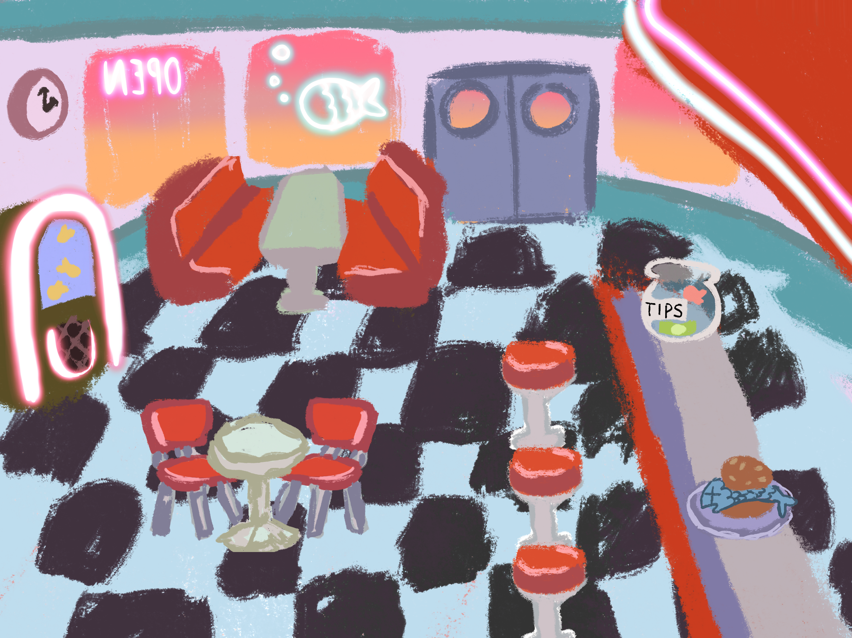For the different locations inside of Kitty Chat, I really wanted them to be places that are hard to find today.