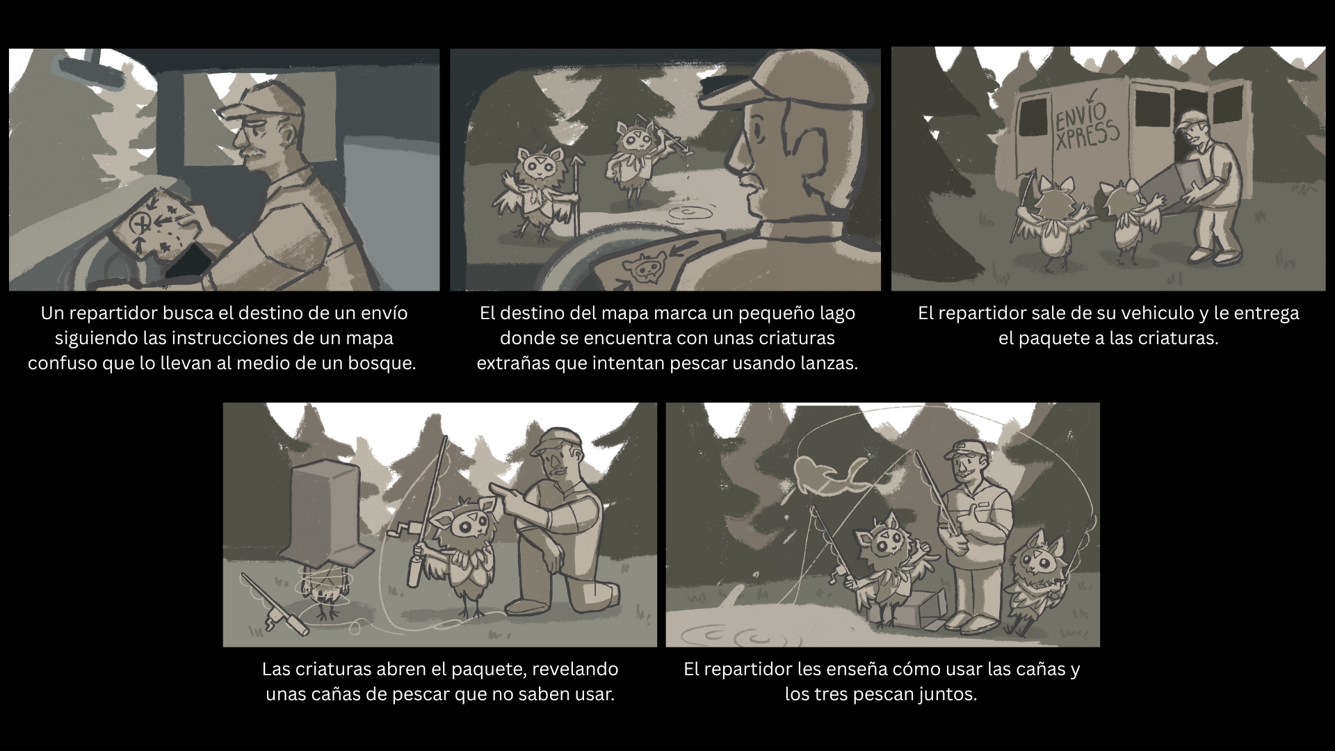 Chilean package delivery. I wanted the story to feel like a commercial with cute and fantastical elements. And so I